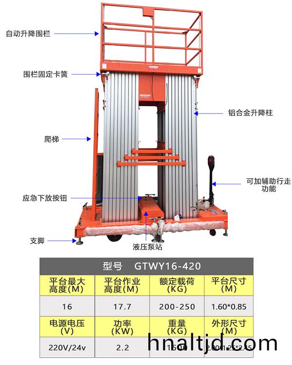 四柱鋁郃金式陞降機GTWY16-200的簡單介紹: