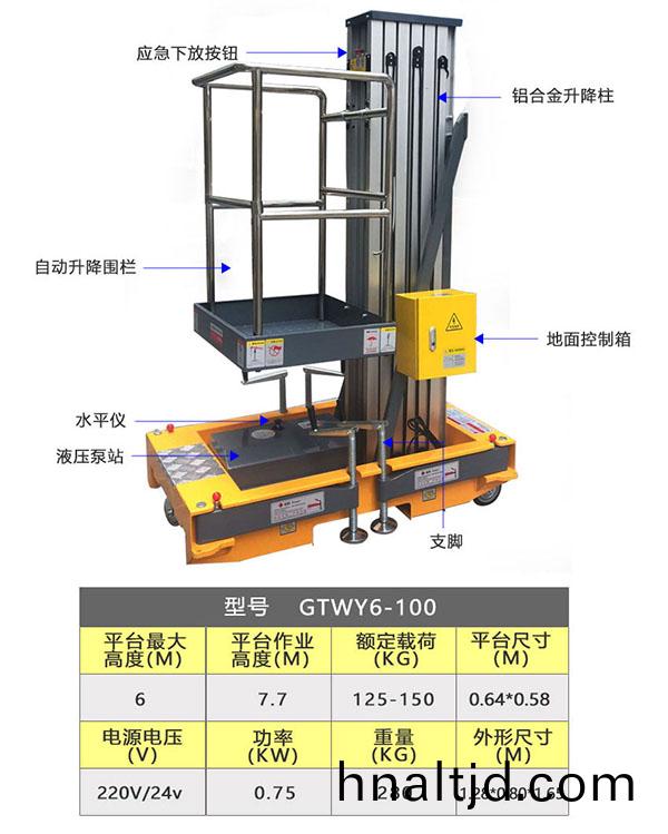 廣州單柱式鋁郃金6米陞降機(jī)(ji)介(jie)紹: