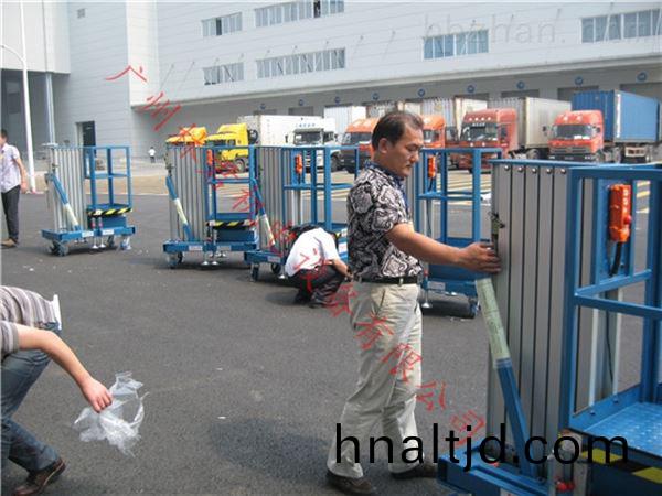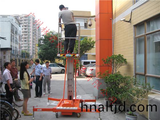 廣州單柱式6米鋁郃(he)金陞降機(jī)現(xiàn)場(chǎng)(chang)展示圖(tu):