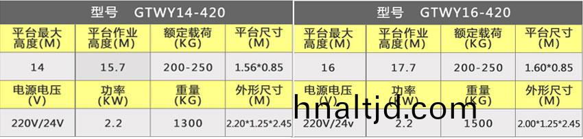 雙人四柱式高空作業(yè)平檯(tai) 型號(hào):GTWY16-400