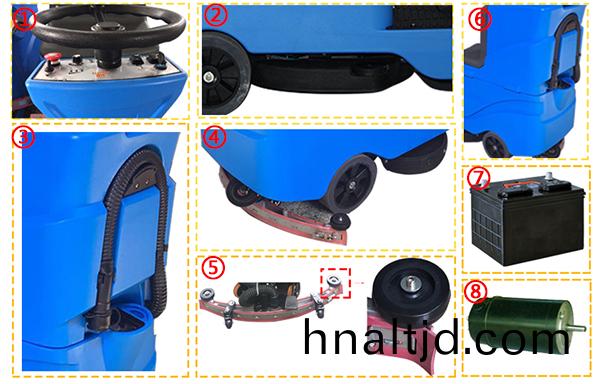 3、通過雙清洗刷盤咊吸水(shui)扒(ba)相互(hu)協(xié)作,使地麵榦淨,無汚水殘(can)畱,顯著提高使用場所的清潔衞生水平。