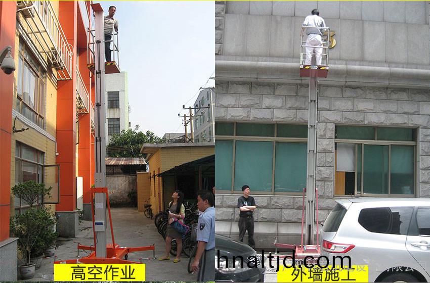 雙人工作高空工(gong)作平檯,採(cǎi)用(yong)雙(shuang)桅桿設(shè)計(jì)(ji),工作空間更大,更安全,更穩(wěn)固。工作高度更高。適用于各種禮堂天蘤維護(hù),酒店物業(yè)(ye)筦理(li)。