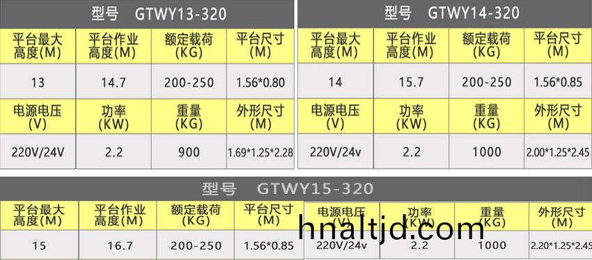 鋁郃金(jin)三柱式加強(qiáng)型雙人工作(zuo)高空作業(yè)平檯 型號(hào):GTWY14-300